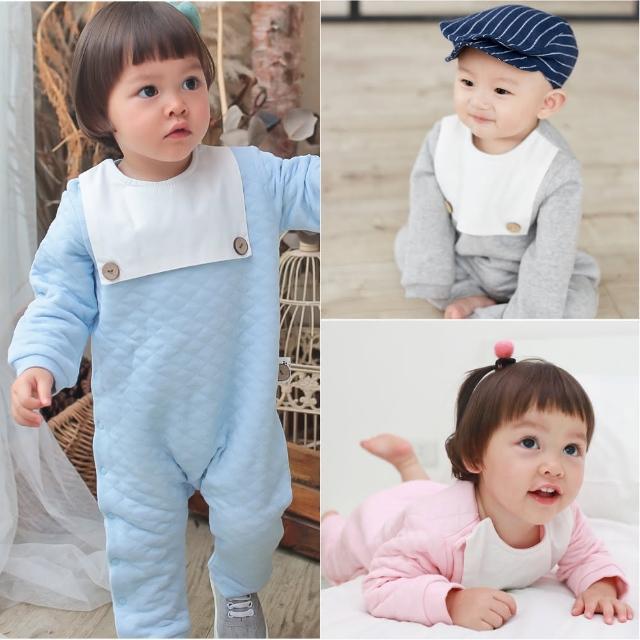 【Baby童衣】造型圍兜側開扣長袖連身衣 70013(共2色) 評價